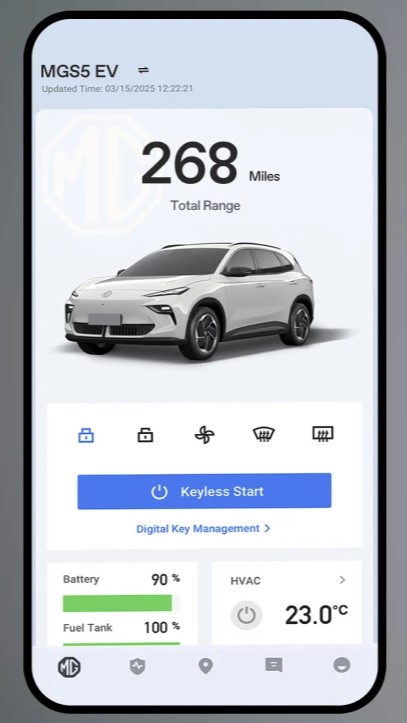 MG iSMART to nasz inteligentny system, który łączy samochód, telefon i internet. Za pomocą aplikacji można łatwo zlokalizować samochód, sprawdzić stan pojazdu, a nawet wstępnie ogrzać wnętrze.